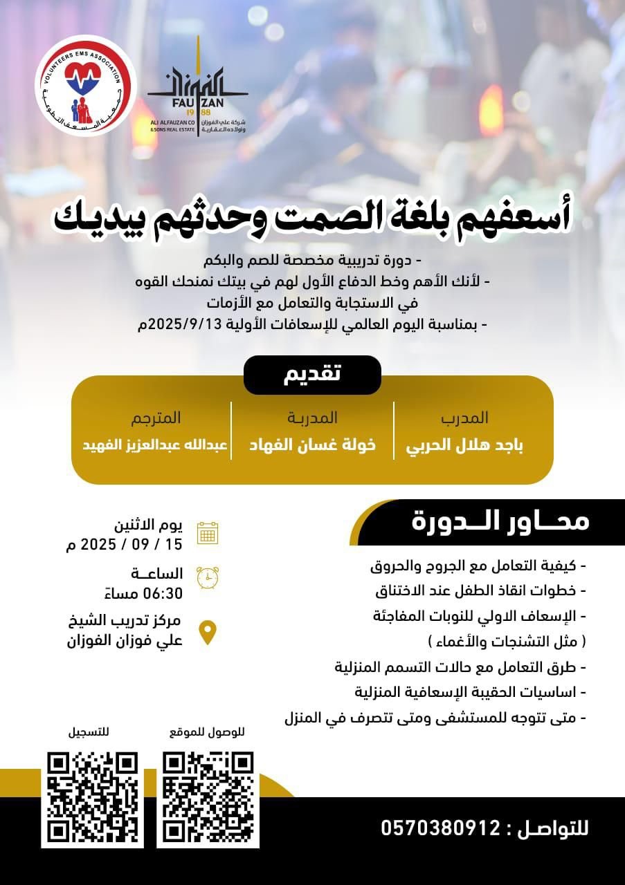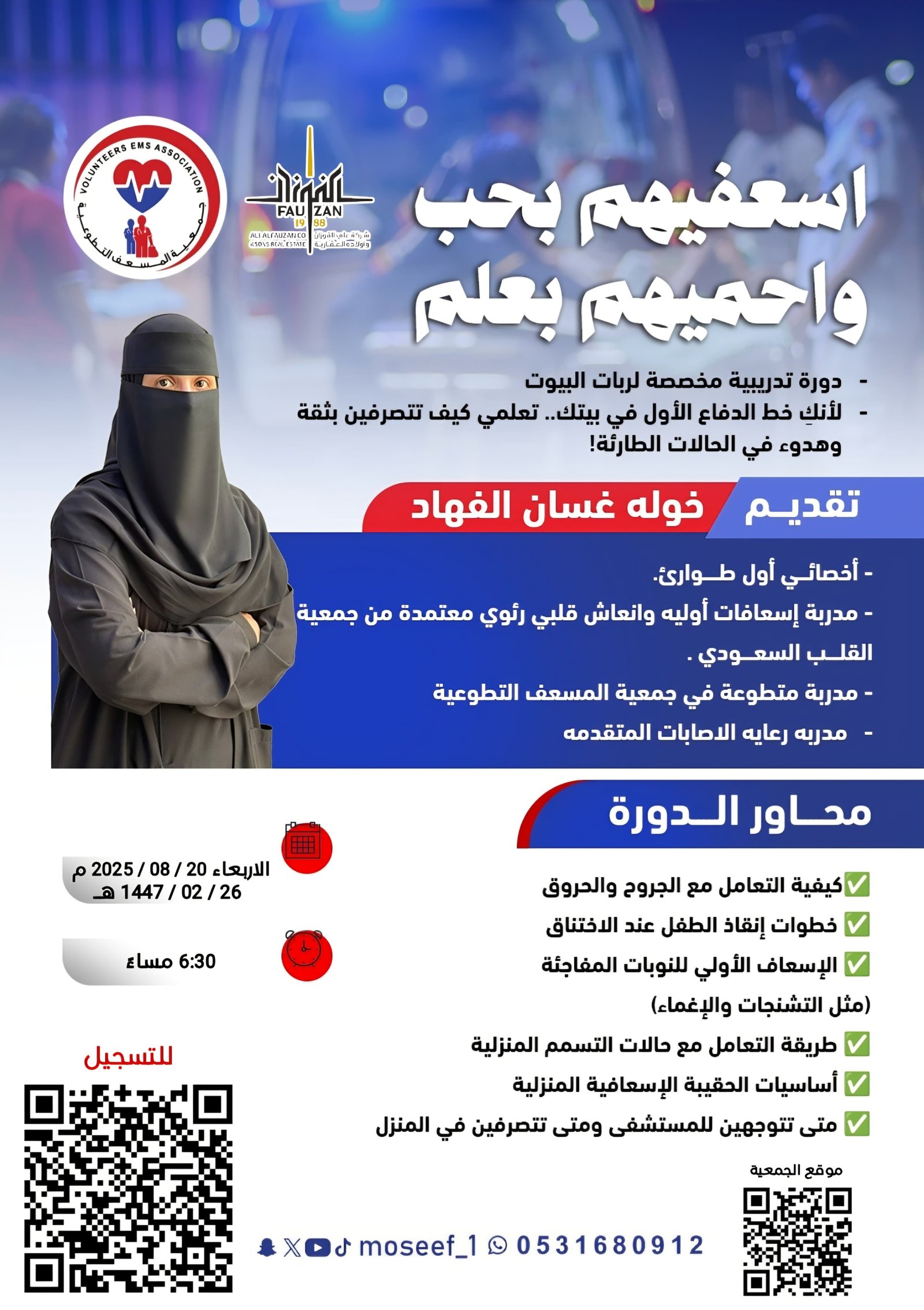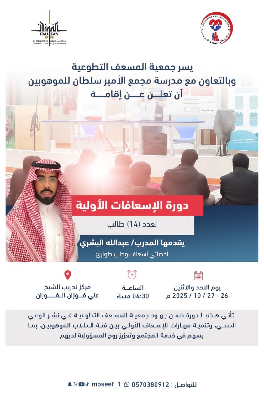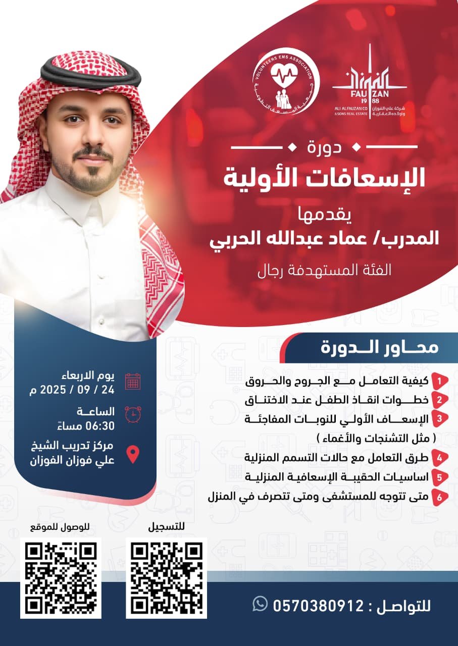 دورة اسعافات اولية رجالية 10 / 12 / 2025 م