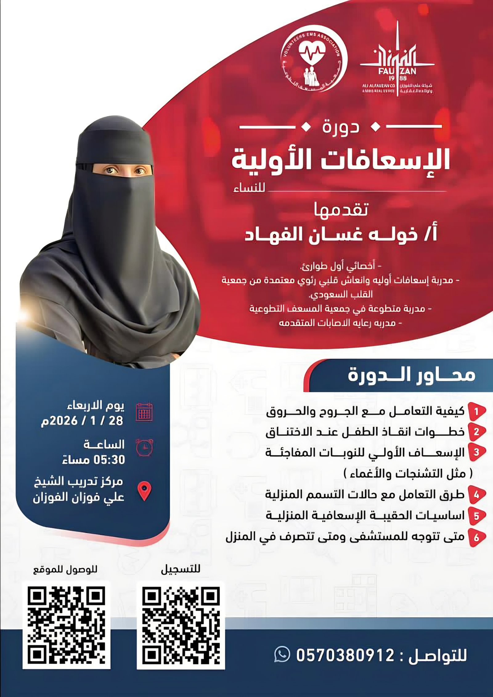 دوره الاسعافات الأولية للنساء 21 يناير 2026