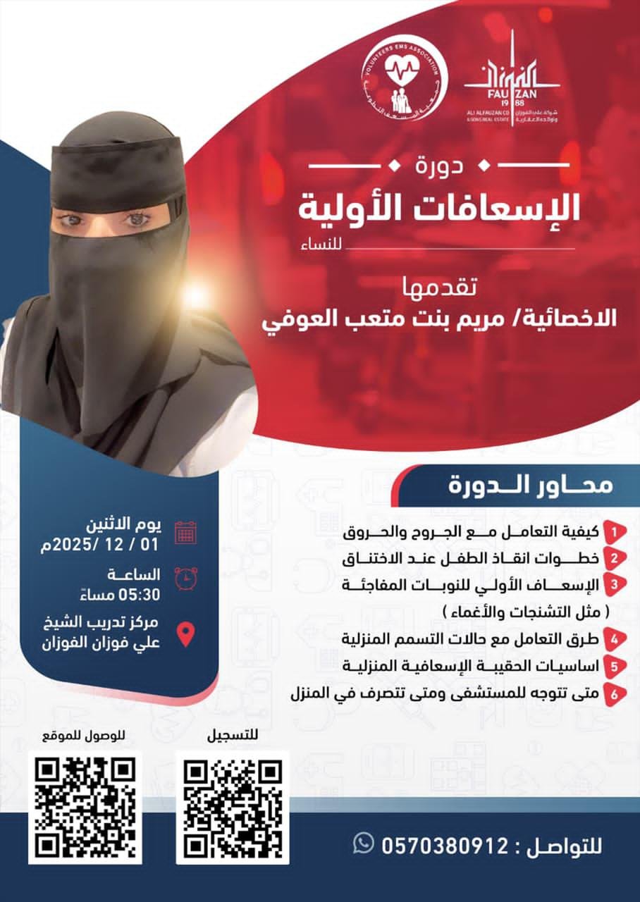دورة اسعافات اولية نسائية ١ ديسمبر