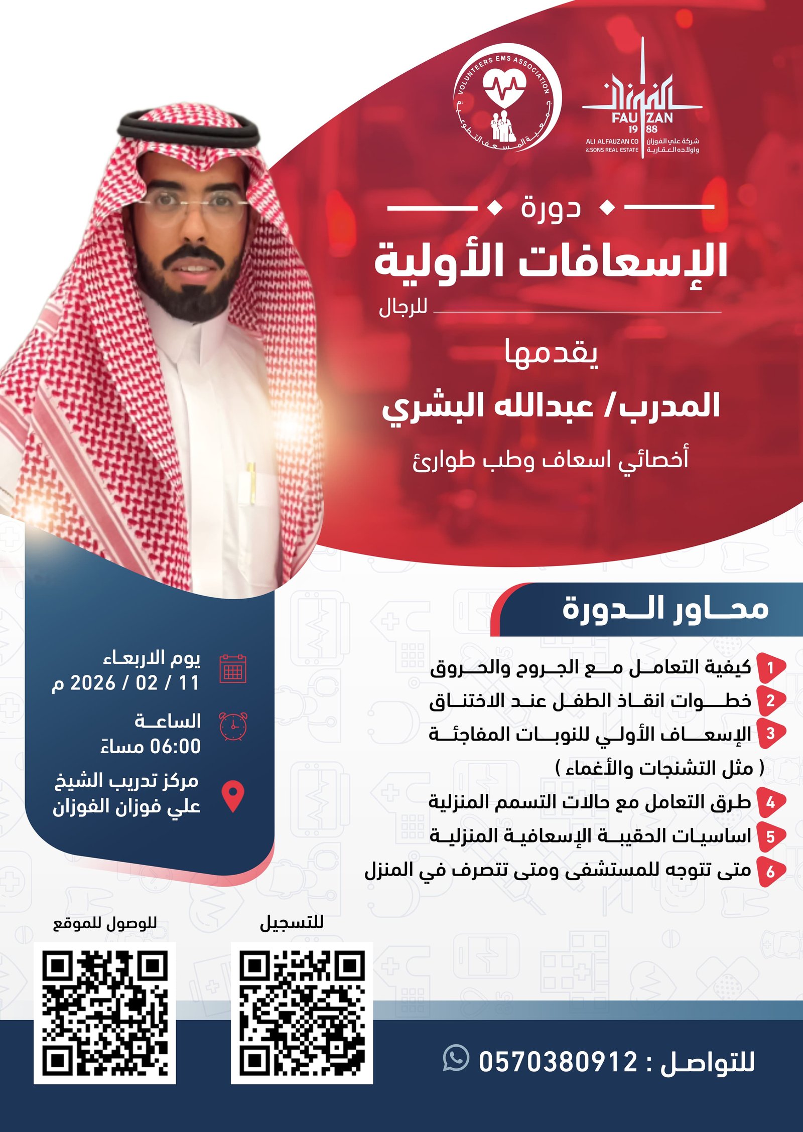 دورة اسعافات اولية رجالية 11 فبراير 2026