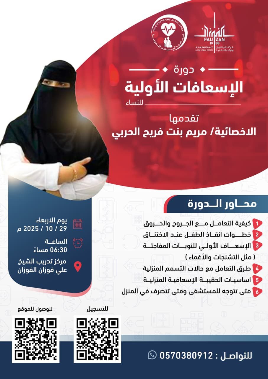 دورة اسعافات اولية رجالية 10 / 12 / 2025 م